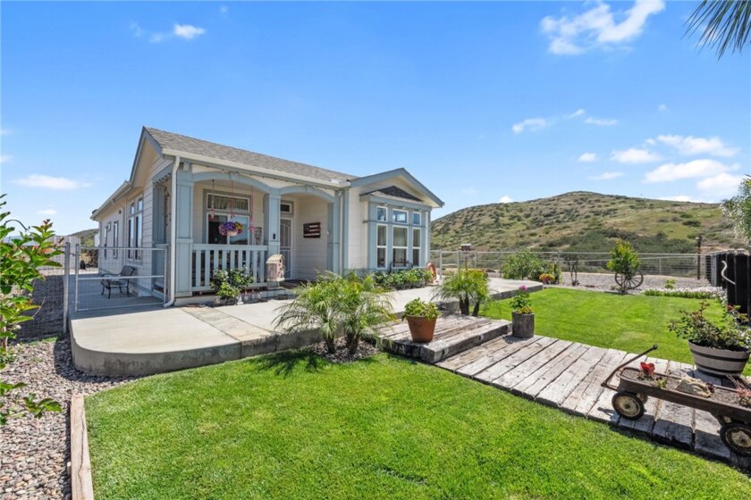 READ TO THE END!!! YOU WON'T BELIEVE WHAT THIS HOME HAS TO OFFER!! This Oakridge Ranches home is beautifully upgraded and delivers the serenity of rural living without sacrificing modern comforts. Whether you're dreaming of a horse property, a hobby farm, or just some wide-open space to breathe, this Oakridge Ranches retreat has the freedom you’ve been craving. Behind the gated entry, a charming front porch invites you to slow down and savor your morning coffee in the quiet stillness of nature. Inside, the open-concept layout makes the most of the view, with high-end laminate flooring, crown molding, and a spacious great room that spills effortlessly into the gourmet kitchen. Here, you'll find granite countertops, upgraded cabinetry, a coffered ceiling, stainless steel appliances, built-in trash storage, and plenty of cupboard space. The primary suite is privately tucked at the back of the home and feels like a true escape with its large soaking tub, walk-in shower, dual vanities, coffered ceiling, and walk-in closet. Two additional bedrooms and a full guest bath (with an unused shower!) provide comfortable accommodations for guests and family. Outside is where this property really shines. A massive 47' x 15' aluminum patio cover with recessed lighting and outlets covers a 60' x 15' concrete patio—ideal for outdoor living. You’ll also find a 20' x 24' metal garage/workshop, a 9' x 15' storage shed on a concrete RV pad (with dump station), sidewalks that wrap the entire home, two cargo containers (40' and 20'), and three 10-foot access gates enclosing the fully fenced quarter-acre yard. The property also boasts a permanent foundation (concrete slab with 40” crawl space and drainage), an upgraded 200-amp electrical panel, and an emergency backup generator system that powers everything but the A/C and well. A 3-stage water filtration system with 20” x 4” filters is located under the home, with a 2-inch water line running from the well to the rear yard. The water system is robust, with a remarkable 150-gallon-per-minute well, a 5,000-gallon water tank, and an additional 1,500-gallon poly tank for backup. A 1,200-gallon concrete septic tank also serves the home. And, if you're looking to expand, there is a separate 120’ x 70’ graded pad is ready for horses, animals, or your next big idea. This home is a lifestyle...one with sunsets, starry skies, and space to grow.