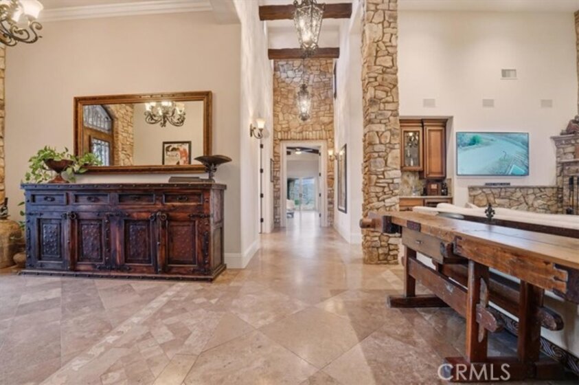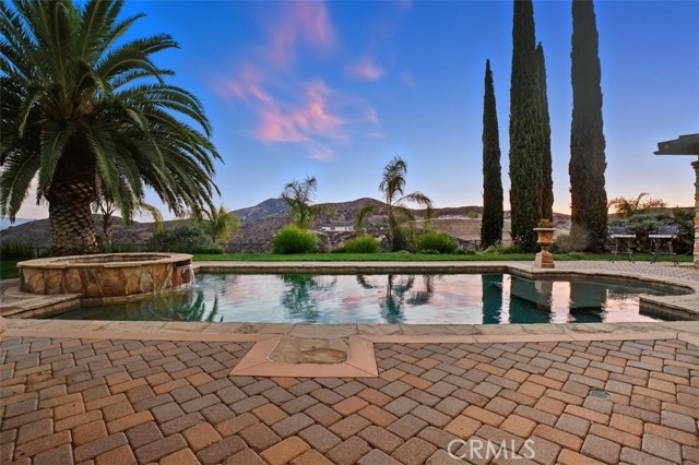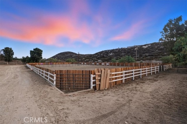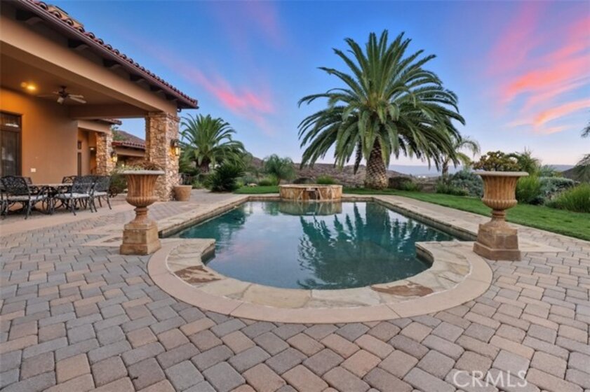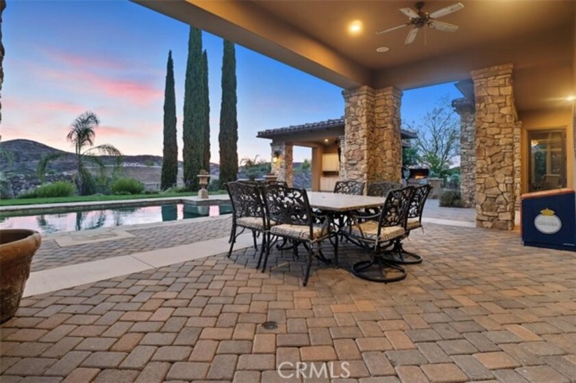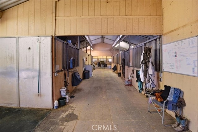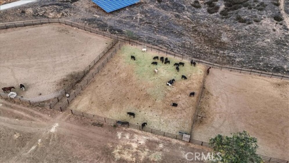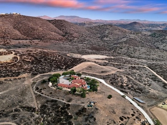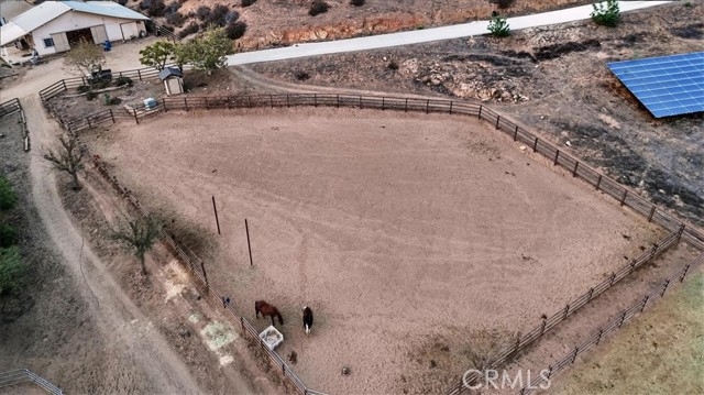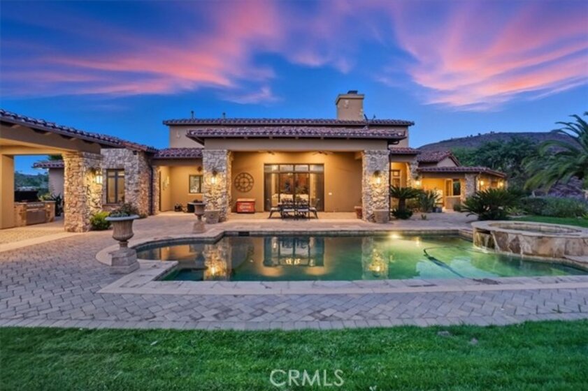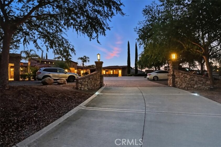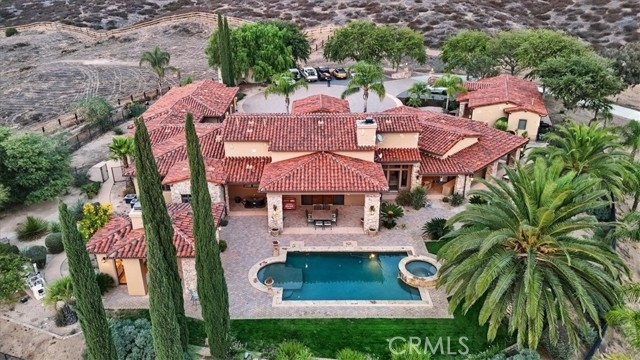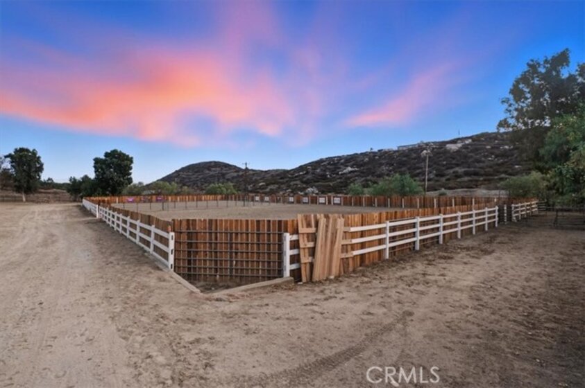 Nestled within the exclusive Oakridge Ranch Estates, this extraordinary 15.6-acre property perfectly combines refined country living with modern luxury. Designed for comfort and sophistication, it offers a rare balance of elegance, privacy, and functionality. Surrounded by scenic horse trails, the estate features extensive equestrian facilities and income-producing opportunities, making it ideal for horse enthusiasts or investors seeking a serene ranch setting. The main residence offers 3 spacious bedrooms and 3.5 bathrooms, while a detached guest house provides 1 bedroom and 1 bathroom, perfect for extended family or guests. Inside there are vaulted ceilings, chandeliers, and exquisite tile flooring for a luxurious living. This home is equipped with smart home technology that allows full control of lighting, climate, and security from anywhere in the world with aHomeWorks lighting system & three-zone HVAC. The living room is inviting with a beautiful stone fireplace and built-in mini bar, perfect for entertaining. The gourmet kitchen is a chef’s dream, complete with a walk-in pantry, double oven, center island with built-in refrigerator, and premium Wolf cooktop. Adjacent, the dining area is filled with natural light and offers breathtaking views of the property. The primary suite is a true retreat, with its own fireplace, a luxurious bathroom with walk-in shower, tub, vanity area, and expansive walk-in closet that has its own washer and dryer. Step outside to a private paradise: a resort-style backyard with a sparkling pool and spa, built-in BBQ, outdoor shower, mounted TV, and a spacious covered patio, ideal for relaxing or entertaining. The equestrian facilities are a standout feature and currently generate income. These include a 20+ stall show barn with office, 18-stall mare motel, a large fenced performance arena, and multiple fenced pastures—all designed for efficient, easy operation. Supporting infrastructure includes an Artesian well, a commercial-grade reverse osmosis water system producing up to 2,800 gallons per day, an oversized propane tank, and commercial traffic-rated septic systems for both homes. The reinforced concrete driveway is engineered to support the weight of an 18-wheeler, and a lease-free solar system adds long-term energy efficiency. More than just a home, this Oakridge Ranch Estates property offers a lifestyle with luxurious amenities, income, and the serenity of ranch living.