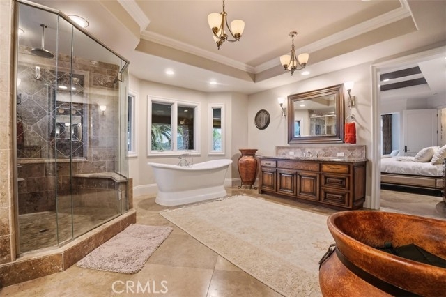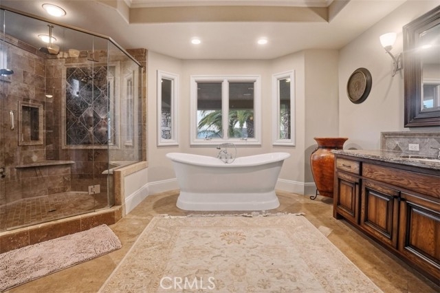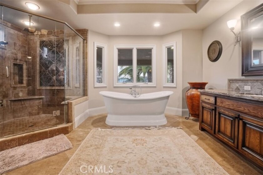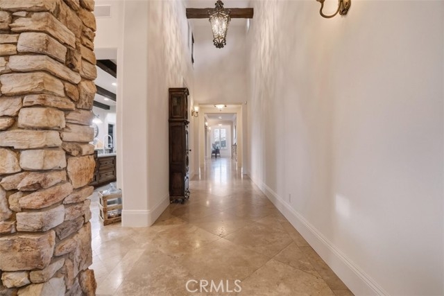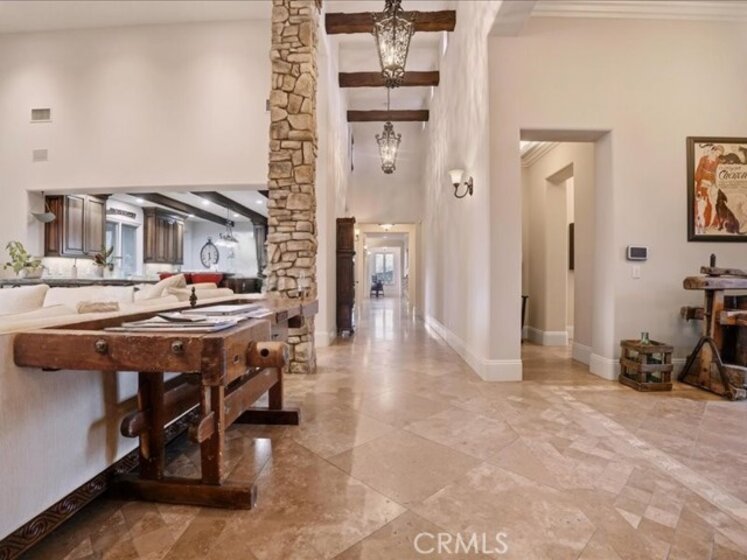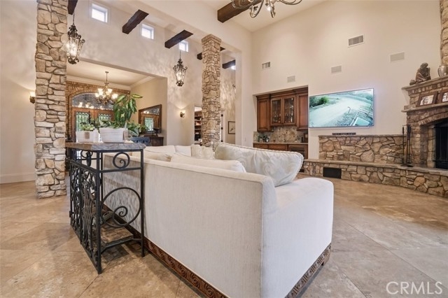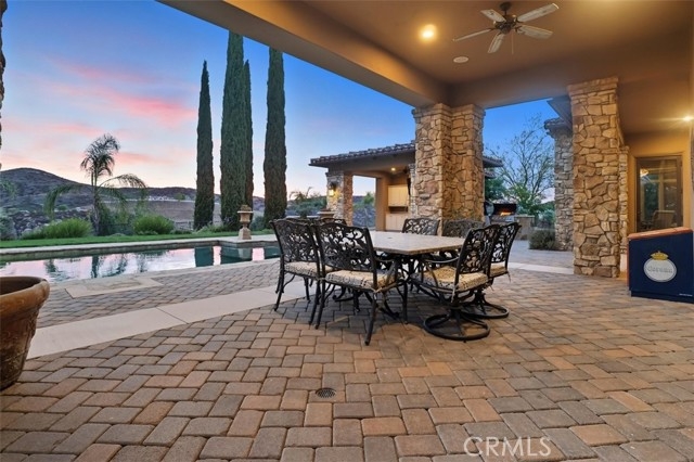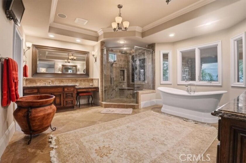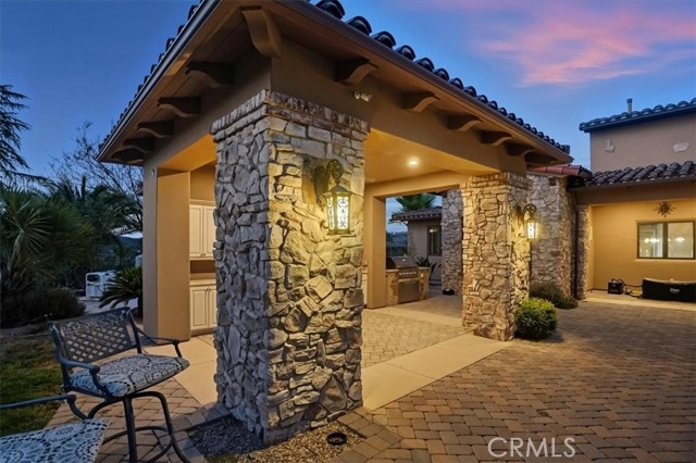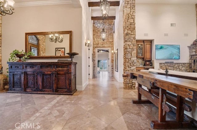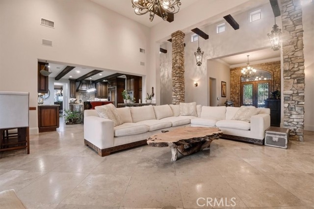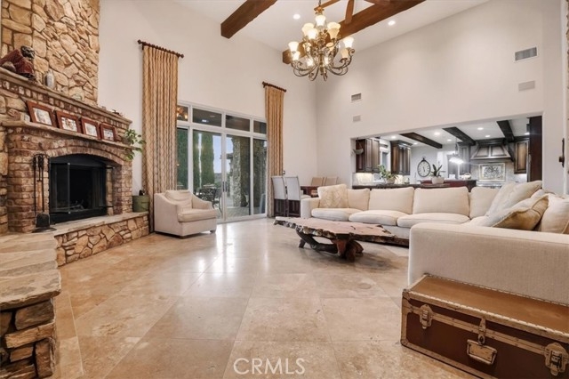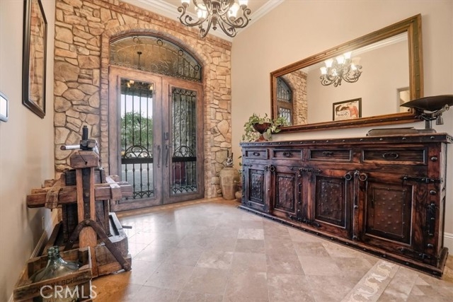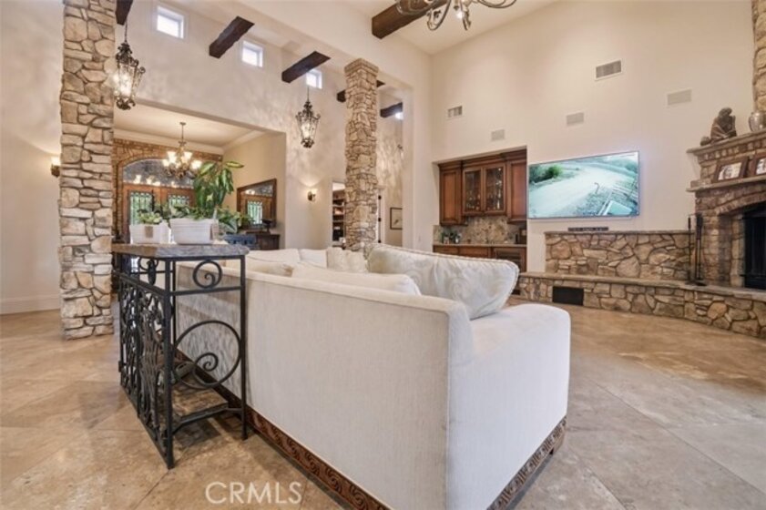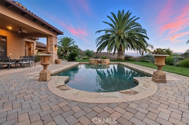 Nestled within the exclusive Oakridge Ranch Estates, this extraordinary 15.6-acre property perfectly combines refined country living with modern luxury. Designed for comfort and sophistication, it offers a rare balance of elegance, privacy, and functionality. Surrounded by scenic horse trails, the estate features extensive equestrian facilities and income-producing opportunities, making it ideal for horse enthusiasts or investors seeking a serene ranch setting. The main residence offers 3 spacious bedrooms and 3.5 bathrooms, while a detached guest house provides 1 bedroom and 1 bathroom, perfect for extended family or guests. Inside there are vaulted ceilings, chandeliers, and exquisite tile flooring for a luxurious living. This home is equipped with smart home technology that allows full control of lighting, climate, and security from anywhere in the world with aHomeWorks lighting system & three-zone HVAC. The living room is inviting with a beautiful stone fireplace and built-in mini bar, perfect for entertaining. The gourmet kitchen is a chef’s dream, complete with a walk-in pantry, double oven, center island with built-in refrigerator, and premium Wolf cooktop. Adjacent, the dining area is filled with natural light and offers breathtaking views of the property. The primary suite is a true retreat, with its own fireplace, a luxurious bathroom with walk-in shower, tub, vanity area, and expansive walk-in closet that has its own washer and dryer. Step outside to a private paradise: a resort-style backyard with a sparkling pool and spa, built-in BBQ, outdoor shower, mounted TV, and a spacious covered patio, ideal for relaxing or entertaining. The equestrian facilities are a standout feature and currently generate income. These include a 20+ stall show barn with office, 18-stall mare motel, a large fenced performance arena, and multiple fenced pastures—all designed for efficient, easy operation. Supporting infrastructure includes an Artesian well, a commercial-grade reverse osmosis water system producing up to 2,800 gallons per day, an oversized propane tank, and commercial traffic-rated septic systems for both homes. The reinforced concrete driveway is engineered to support the weight of an 18-wheeler, and a lease-free solar system adds long-term energy efficiency. More than just a home, this Oakridge Ranch Estates property offers a lifestyle with luxurious amenities, income, and the serenity of ranch living.